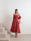 Ideal para eventos sociais, festas e jantares, o modelo tomara que caia destaca os ombros com charme e sutileza, enquanto o comprimento midi oferece um toque clássico e moderno. O tecido de alta qualidade garante conforto e durabilidade, assegurando que você se sinta confiante e elegante durante toda a ocasião.