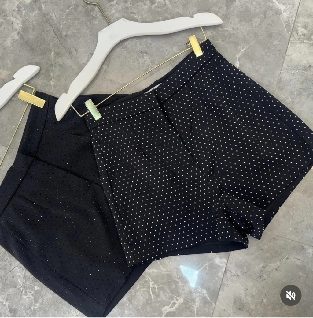 Com um corte impecável, esse short valoriza a silhueta e proporciona um caimento perfeito. O detalhe em strass adiciona um brilho sutil e encantador, tornando-o perfeito para eventos especiais ou para um look mais elaborado.