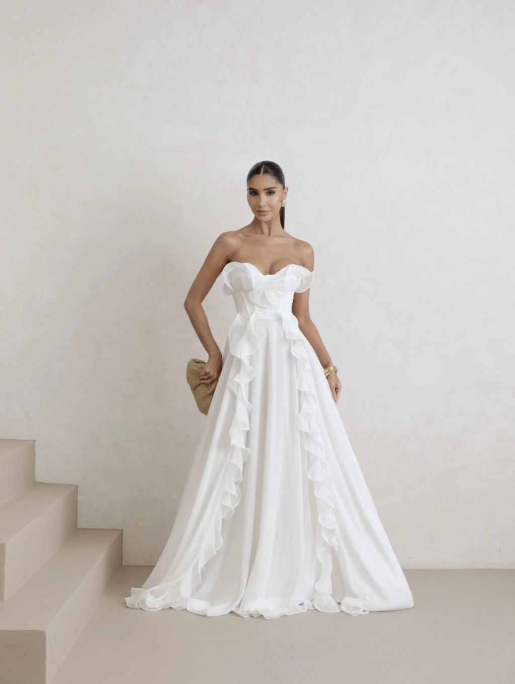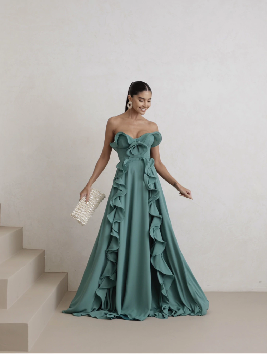 Descubra a elegância do Vestido longo fluido tomara que caia com babados, perfeito para ocasiões especiais. Seu design fluido e delicado realça a feminilidade, enquanto os babados adicionam charme e movimento ao visual. Confeccionado em tecido leve, proporciona conforto e caimento impecável. Ideal para festas, casamentos e eventos noturnos. Garanta já esse clássico que valoriza qualquer silhueta!