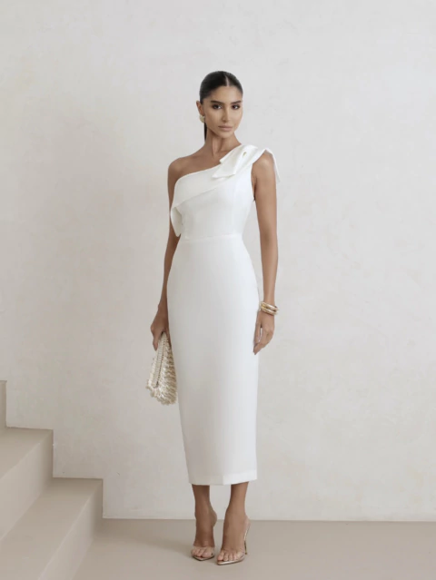 Descubra o Vestido Midi Ombro Único com Detalhe de laço, perfeito para quem busca elegância e modernidade em um só look. Com design assimétrico que valoriza o corpo, este vestido é ideal para ocasiões especiais e eventos sociais.