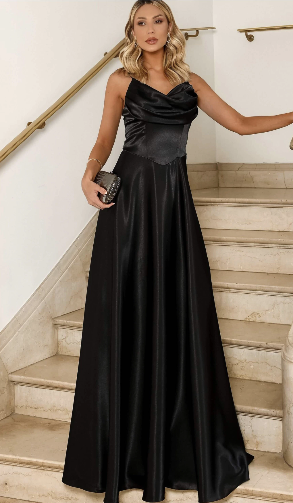 Com um caimento fluido, o cetim de alta qualidade proporciona conforto e movimento, permitindo que você brilhe em cada passo. As alças delicadas realçam os ombros e conferem um toque refinado ao look.