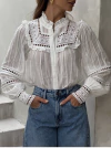 Camisa Feminina Manga Longa Boho com Detalhes de Babados e Renda Camisa Feminina Manga Longa Boho com Detalhes de Babados e Renda
