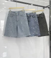 Bermuda Feminina Jeans Cintura Alta com Aplicação de Cristais - comprar online Bermuda Feminina Jeans Cintura Alta com Aplicação de Cristais - comprar online